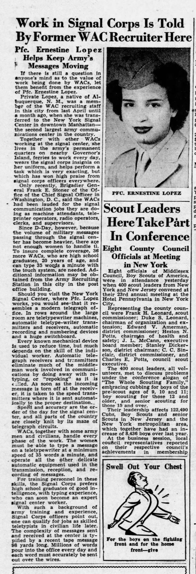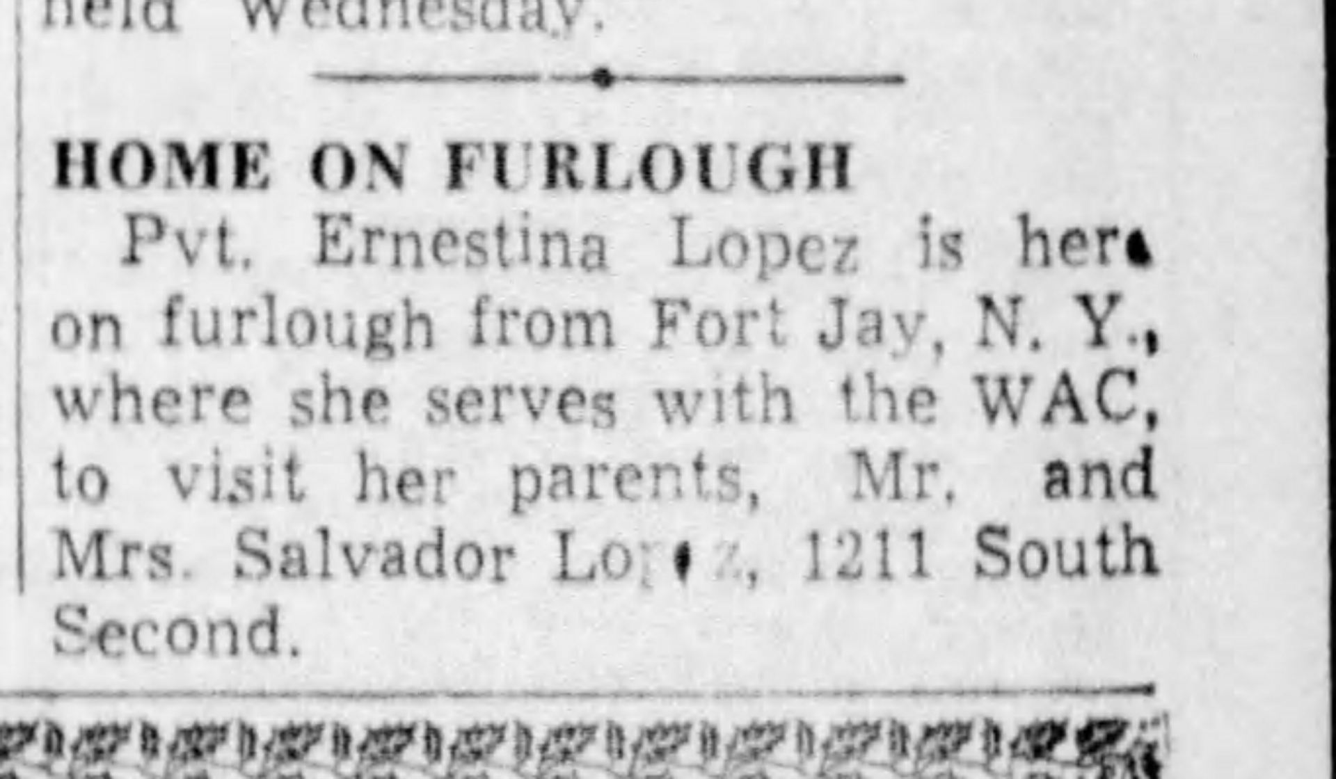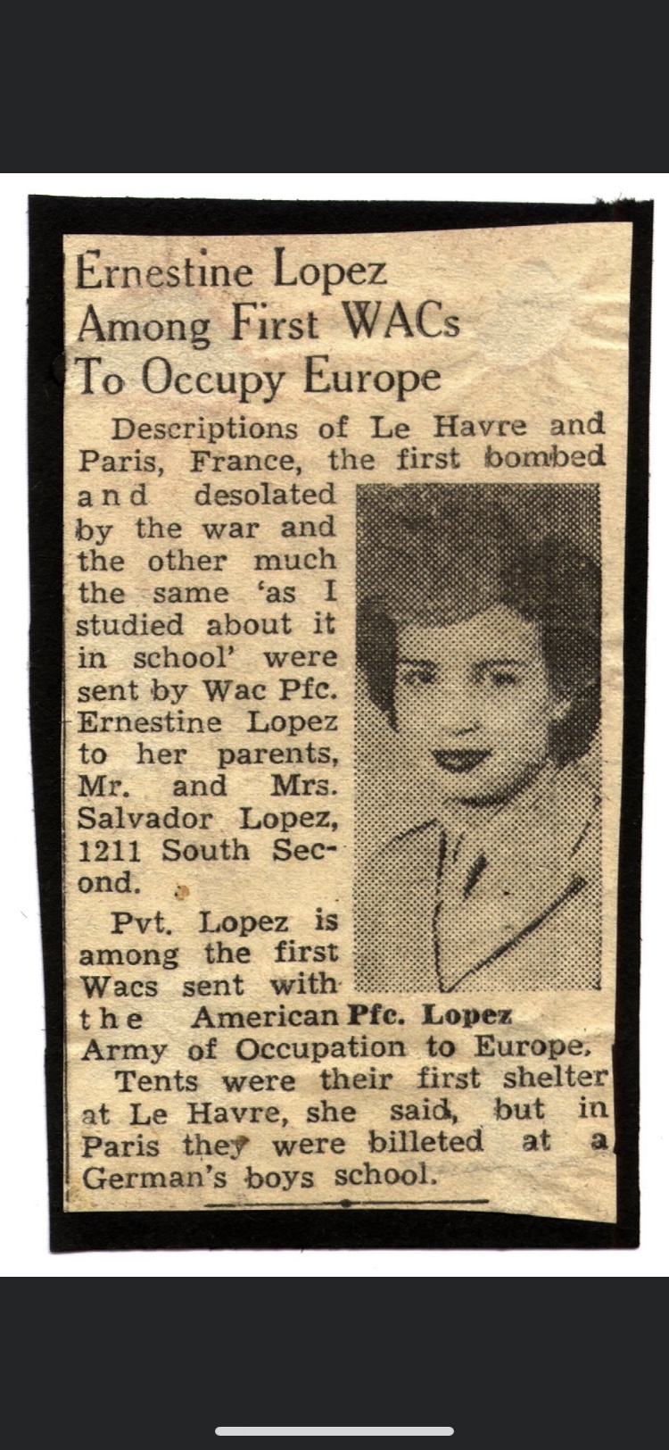 - “Ernestine Lopez among First WACS to occupy Europe,” Albuquerque Journal, June 10, 1945, 24. com.