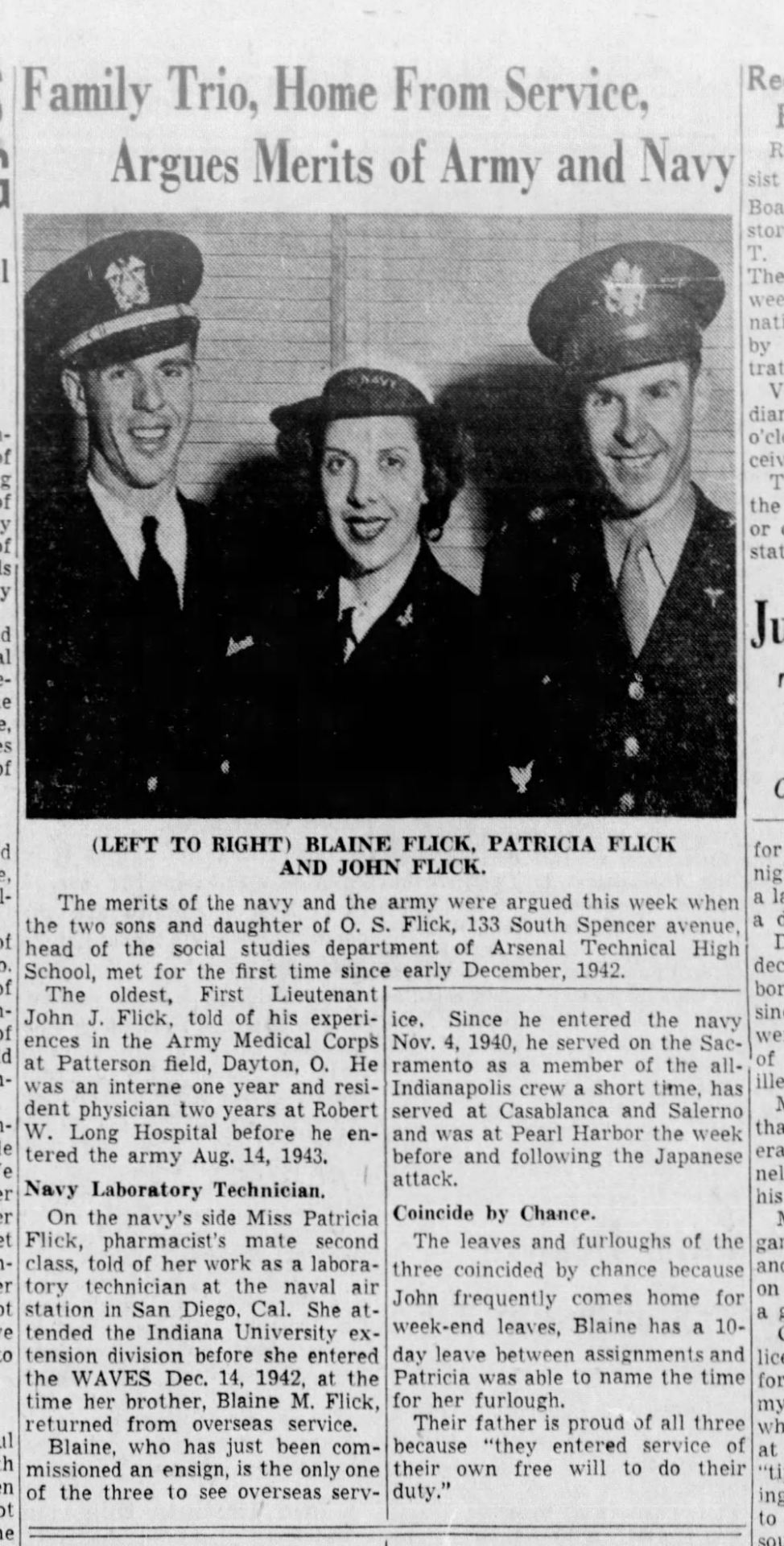 “Family Trio Home from Service, Argues Merits of Army and Navy,” The Indianapolis Star, March 30, 1944, 3.