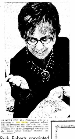 Villella, Lynne. “Firm but Feminine Hand Takes Over the Helm.” Albuquerque Tribune, April 12, 1971, 11. Newspapers.com.