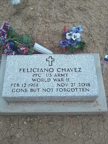 Son of Eduardo Chavez and Dolores Lujan-Chavez of Torreon, Torrance County New Mexico who both died of the Influenza pandemic of 1918. PFC Feliciano Chavez served with the 88th Blue Devils division in North Africa, Italy, Germany, then shipped to the Pacific Philippines then Japan.1