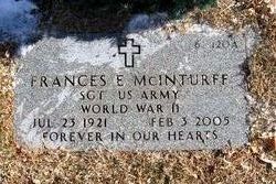“Frances Ella McCarthy McInturff.” Find a Grave, database and images (https://www.findagrave.com/memorial/17572374/frances-ella-mcinturff: accessed 16 July 2023), memorial page for Sgt Frances Ella McCarthy McInturff (23 Jul 1921–3 Feb 2005), Find a Grave Memorial ID 17572374, citing Santa Fe National Cemetery, Santa Fe, Santa Fe County, New Mexico, USA; Maintained by David McInturff (contributor 47179039).