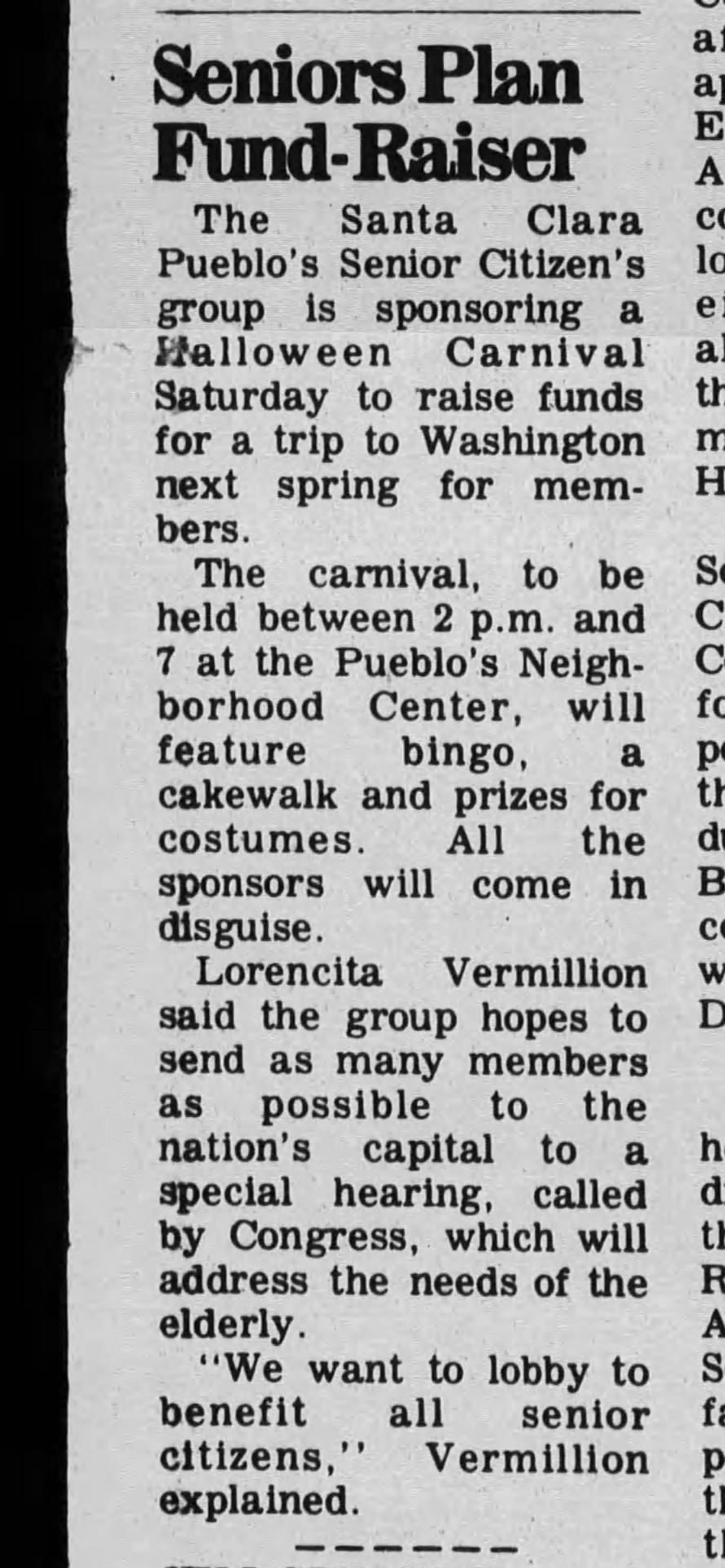 “Seniors Plan Fundraiser.” Rio Grande Sun. October 27, 1983, 14. Newspapers.com. Newspapers.com.