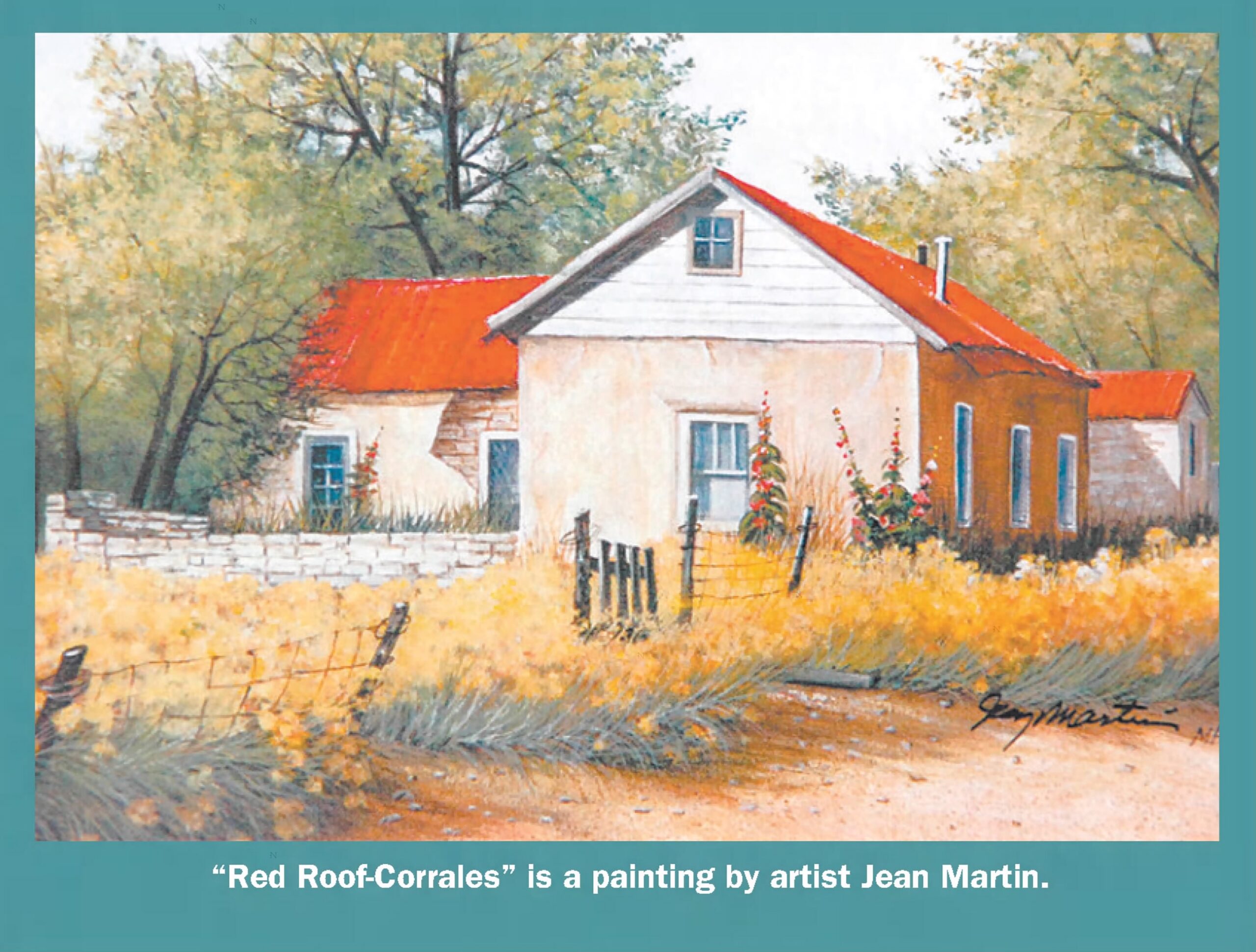 “Red Roof-Corrales by Jean Marin.” Albuquerque Journal Monthly Magazine: Mature Life in New Mexico. Albuquerque, New Mexico. 15 April 2007. Retrieved: 7 September 2023. https://www.newspapers.com/image/206287063 p. 4.