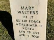 Mary Coon Walters joined the Women’s Airforce Service Pilots (WASPs) in 1943.1 She was stationed at Newcastle Air Base in Wilmington, Delaware.1 Walters was assigned to several flights across the United States, Mexico, and Canada.1 When interviewed later in life, she said that “any woman who volunteered for service in World War II would gladly have gone to combat.”1 Following her stint with the WASPs, Walters served as a 1st Lieutenant in the Air Force Reserves.2 In 1951, she returned to active duty during the Korean War and served as a personnel and recruited officer.1,2 Walters left the Air Force in 1955 in order to become a mother.2