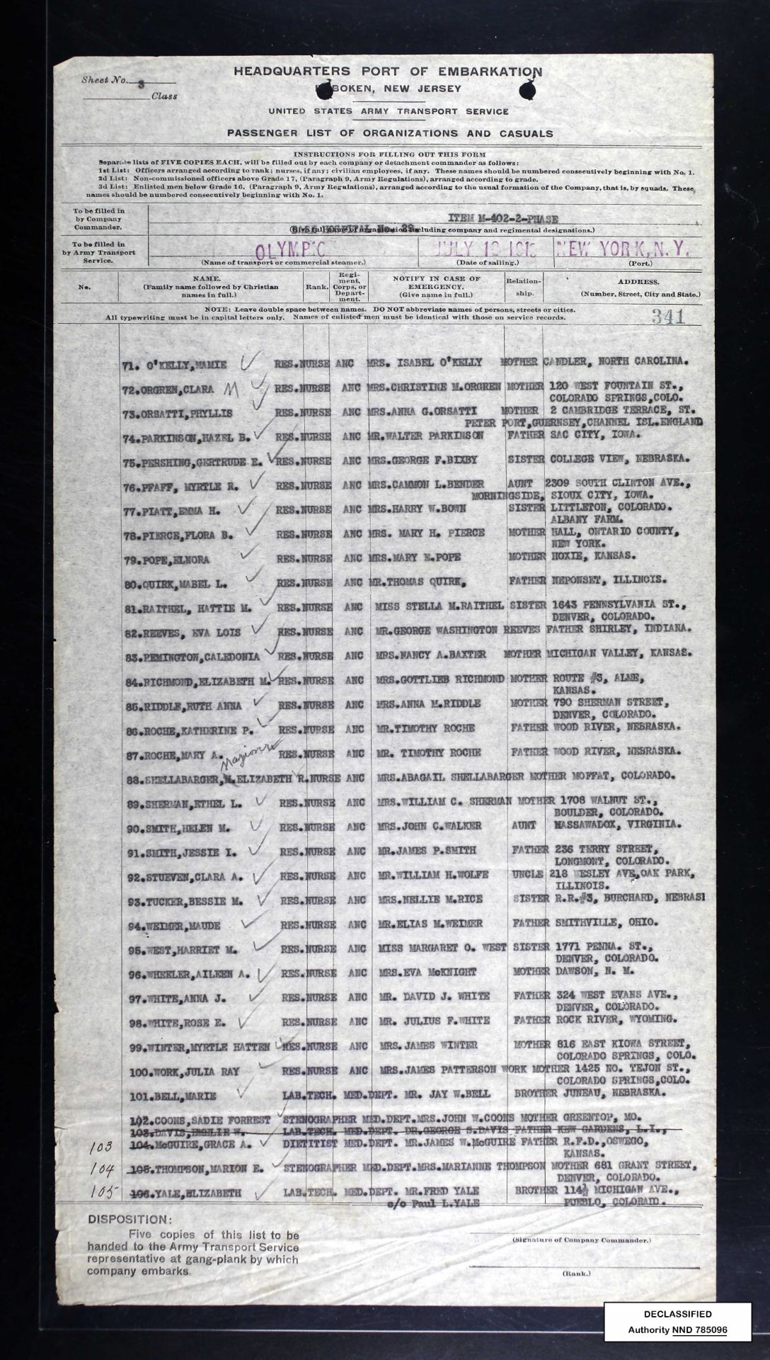 Ancestry.com. U.S., Army Transport Service Arriving and Departing Passenger Lists, 1910-1939 [database on-line]. Lehi, UT, USA: Ancestry.com Operations, Inc., 2016.