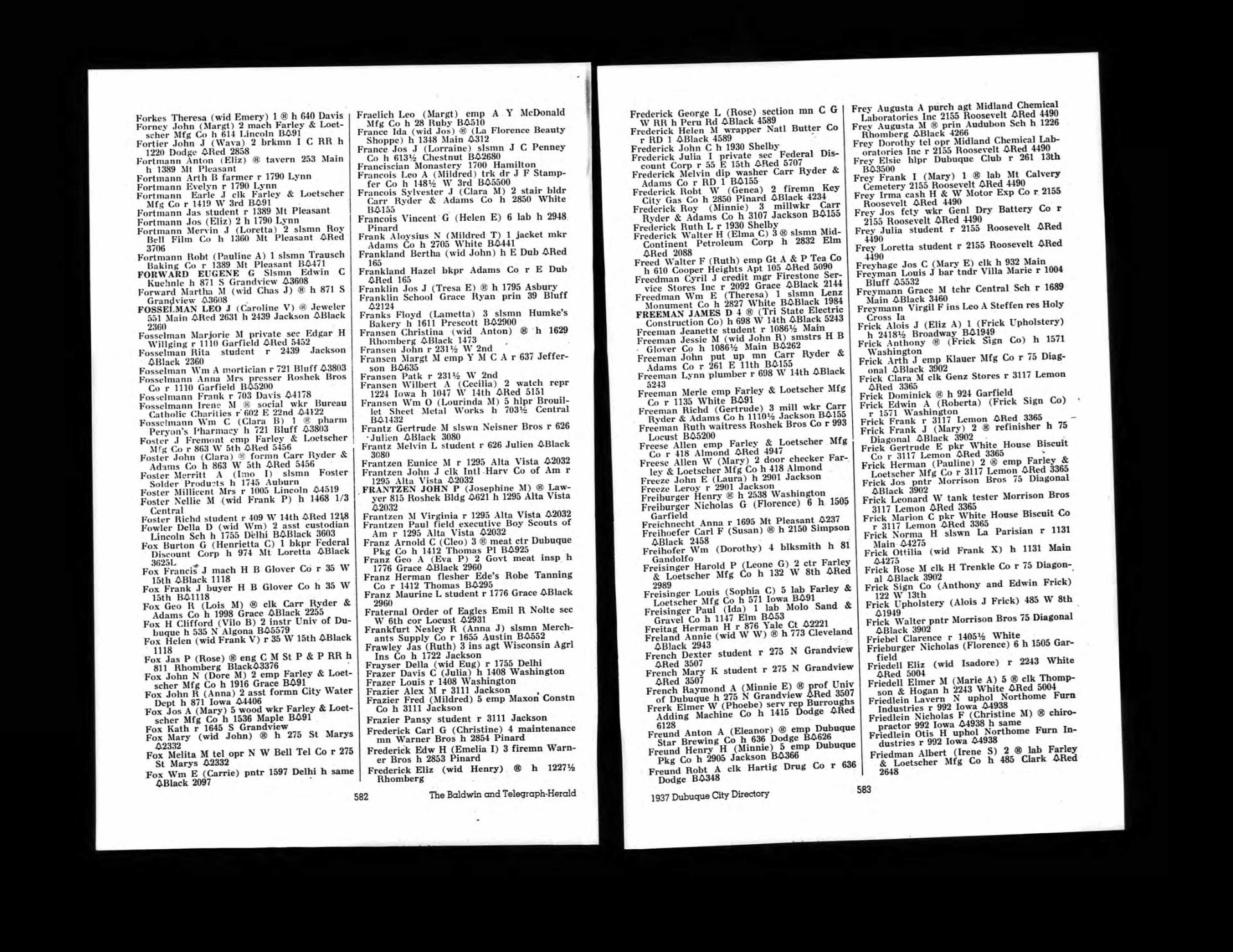 - “Frazier, Pansy Student.” Title: Dubuque, Iowa, City Directory, 1937.