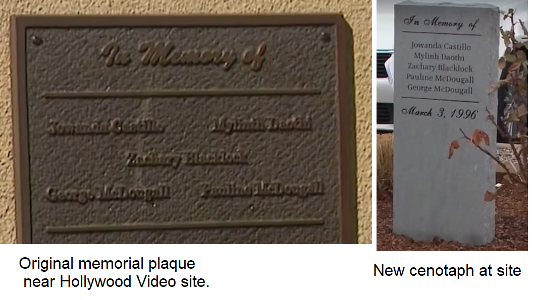 It was a fateful decision. He didn’t have a car, and often needed to be picked up from work. In the early hours of Sunday morning, March 4, 1996, they went to pick up their grandson from work and interrupted a robbery. Their grandson and his two co-workers were shot and killed and the McDougalls were kidnapped. Tragically, Pauline and George McDougall were taken just outside the city and killed later that same morning.22 There were convictions for the crime in January of 1998.23