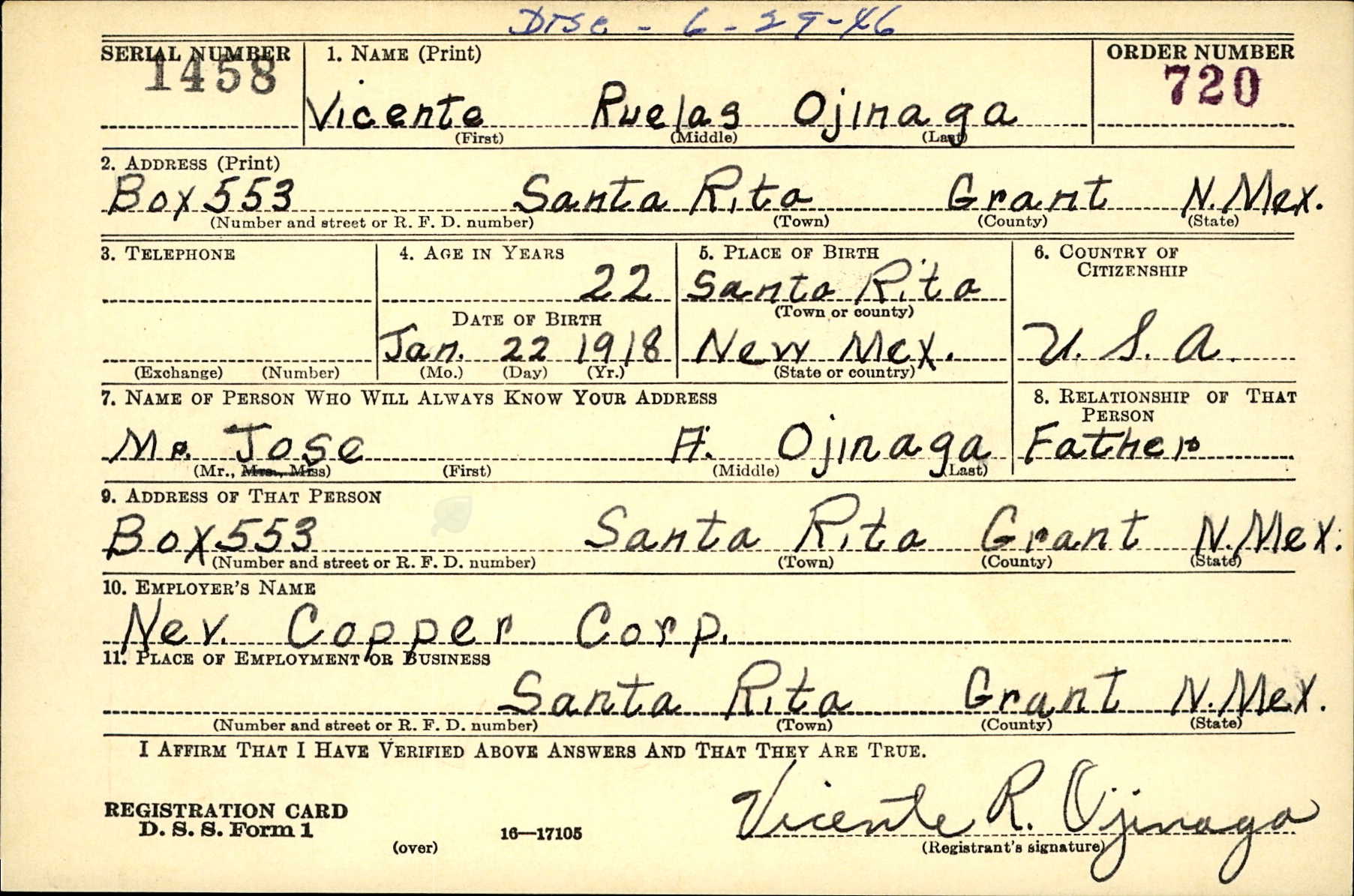 Ojinaga was born in Santa Rita, New Mexico to Josefa and Jose Ojinaga. 2 His parents had come from Mexico to work in the mines at Santa Rita. 4 He graduated from Hurley High School in 1937 and then worked as a carpenter for the Nevada Mining Corporation in Santa Rita. 4, 6 After the war, he attended New Mexico Western University in Silver City and graduated from the University of New Mexico with a Bachelor of Business Administration in 1950. 2, 4 In his professional career, he worked for the State of New Mexico Tax and Revenue Department as Chief of Administrative Services and served as an income tax counselor for the elderly. 2 He was minister of Eucharistic for the sick and elderly and treasurer for numerous community organizations. He was a member of the Knights of Columbus, Toastmasters, Elks, Veterans of Foreign Wars, American Legion, American Ex-Prisoners of War, and the Survivors of Bataan and Corregidor. 2